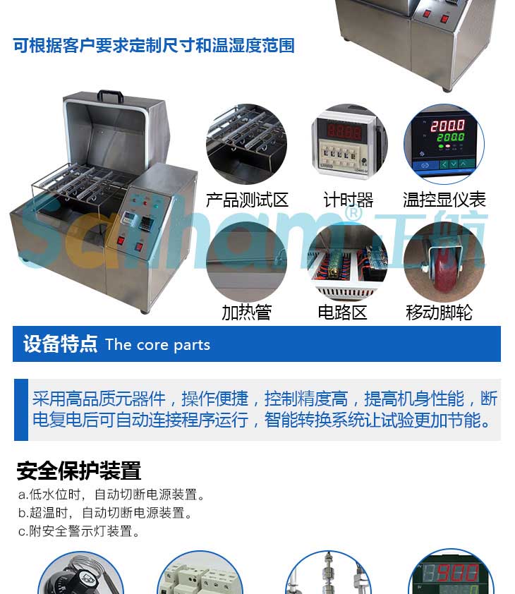 | 產品特點:蒸汽老化試驗箱老化箱整體不銹鋼SUS #304 HL制成,操作設定簡易 微電腦數位LED控制,具時間規劃功能,可在0~9,990Mins間設定 多重超溫保護/缺水切電熱等安全裝置。 零件、連接器被動元件,半導體接腳高溫高濕氧化試驗。 金屬接腳沾錫性試驗加速老化試驗。 采用觸摸式PID+SSR 溫度控制器,同時具有時間計時功能,可設定9990 分式無限。 全自動安全超溫保護及氣用水缺水空焚保護裝置。 | |